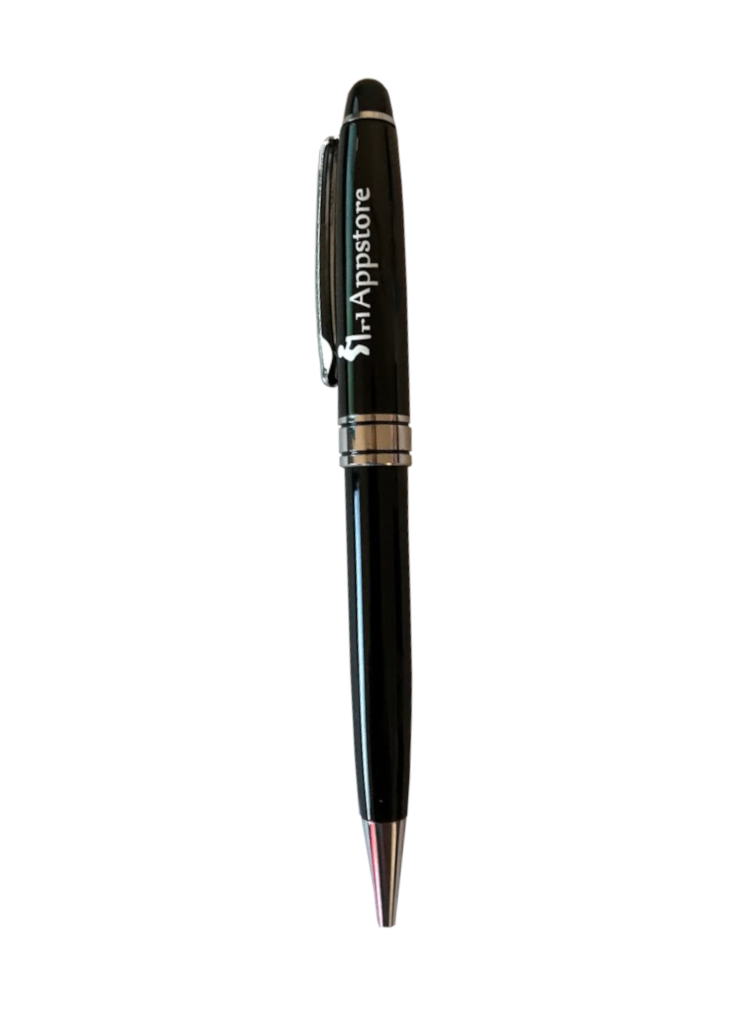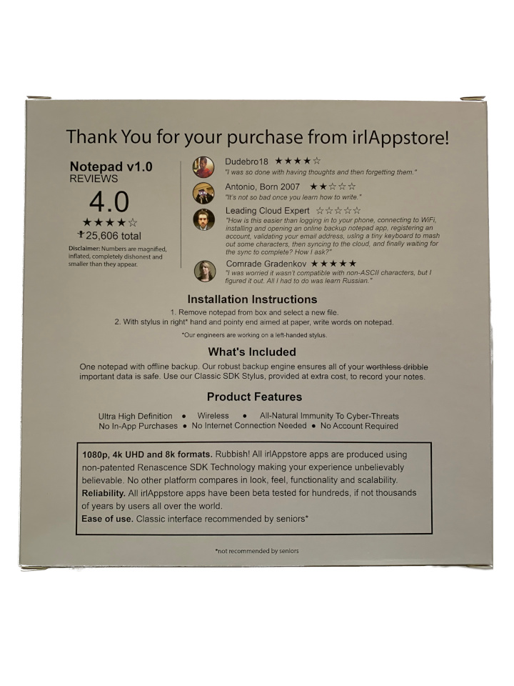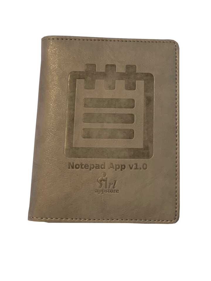 One A6 sized (4.1 x 5.8 in) leather bound, 80 page notebook with carbon copy duplicates so your information is secure and durable. Also included is one stylus compatible with this app. The packaging is scientifically proven to make you laugh, not out loud of course, so more of a hrmpph.